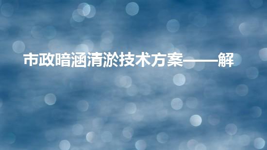 市政暗涵长期使用后会出现内部淤积现象,影响城市排水系统的正常运行。市政暗涵清淤技术方案是通过将市政暗涵内的淤泥、垃圾等清理出来,保证市政暗涵的通畅性,从而提高城市排水系统的运行效率。市政暗涵清淤技术方案包括机械清淤、水压冲洗、吸污、吸水取沙等多种清淤方法,可以根据实际情况选择不同的清淤方法,以保证清淤效率和效果。