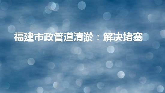 福建市政管道清淤:解决堵塞疏通难题