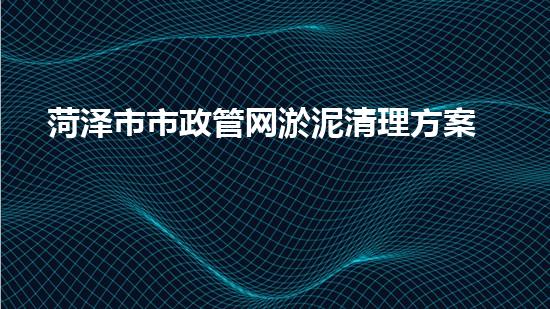 菏泽市市政管网淤泥清理方案及成本分析