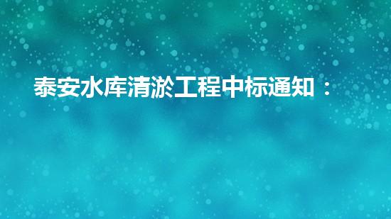 泰安水库清淤工程中标通知:顺利完成下一步!