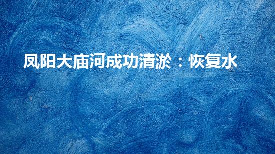 凤阳大庙河成功清淤:恢复水系生态,为市容添新貌