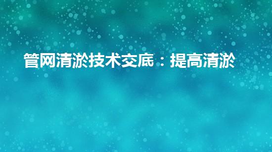 管网清淤技术交底:提高清淤技能,确保管网安全