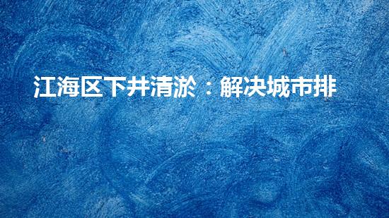 江海区是广州市内水排涝难度较大的一个区域,由于长期受到污水的侵袭,区域内的排水系统积淤严重,导致排水受阻,给城市正常运作带来了严重影响。为解决江海区排涝难题,相关部门开展了一场攻坚战,对区域内的下井进行清淤工作,取得了较好效果。本文将从政策、技术、实践三个方面进行详细探讨江海区下井清淤的相关情况。