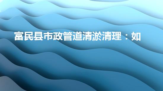 富民县市政管道清淤清理:如何保障城市正常运行?