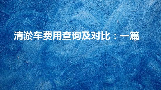 清淤车费用查询及对比:一篇详细指南