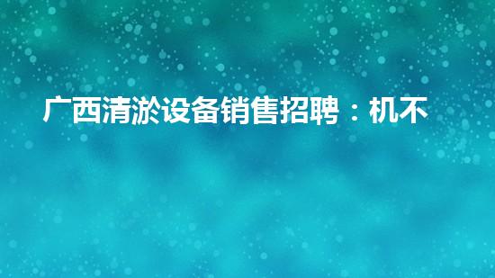 广西清淤设备销售招聘:机不可失,失不再来!