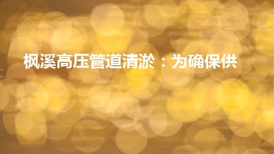 枫溪高压管道清淤:为确保供水安全,新技术加入管道维护
