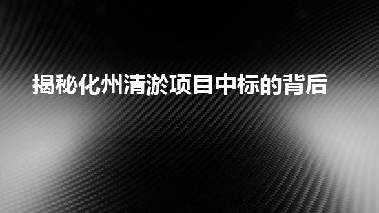 揭秘化州清淤项目中标的背后故事