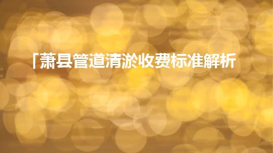 「萧县管道清淤收费标准解析:价值、含义与合理性」