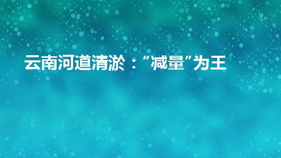 云南河道清淤:“减量”为王
