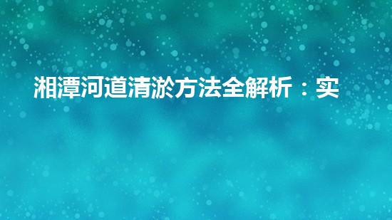湘潭河道清淤方法全解析:实用技巧和注意事项