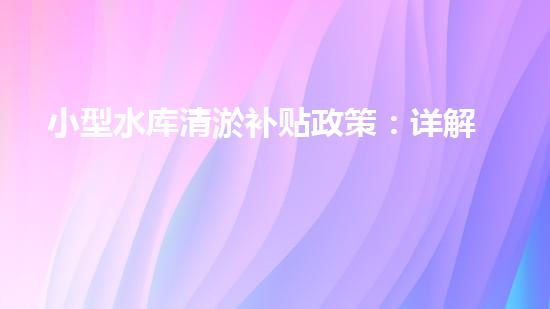 小型水库清淤补贴政策:详解与申请指南