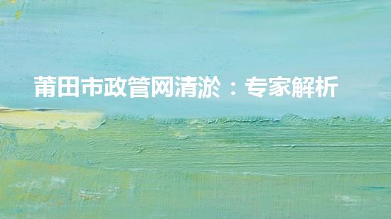 莆田市政管网清淤:专家解析清淤工艺,保障市民生命和财产安全