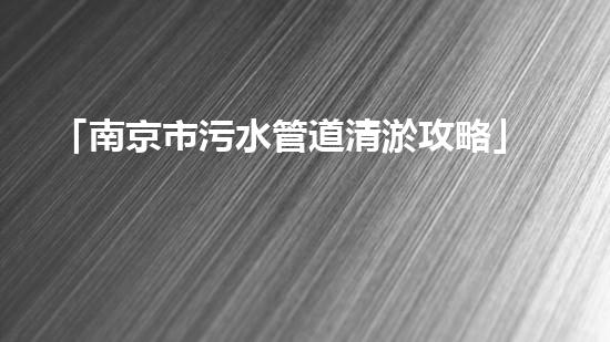 「南京市污水管道清淤攻略」