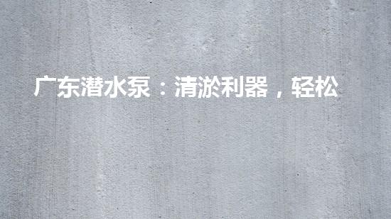 广东潜水泵:清淤利器,轻松搞定污泥、污水任你清!