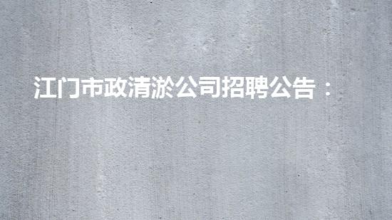 江门市政清淤公司招聘公告:清洁江门,共创美好家园!