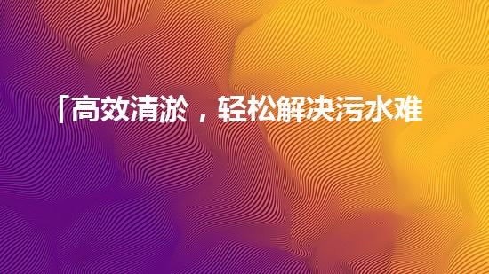 「高效清淤,轻松解决污水难题——定制大型清淤设备」