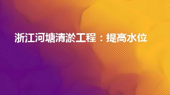 浙江河塘清淤工程:提高水位,协调发展