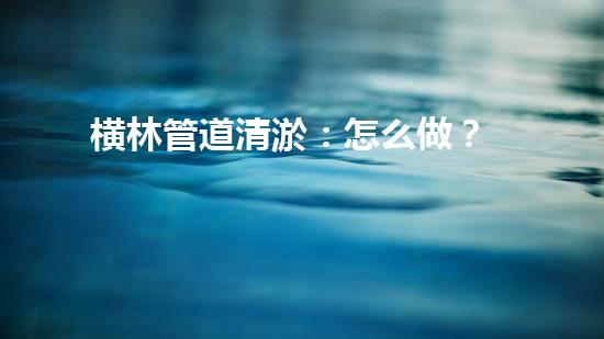 横林管道清淤:怎么做?