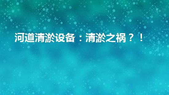 河道清淤设备:清淤之祸?!