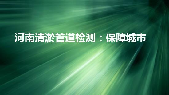 河南清淤管道检测:保障城市排水畅通