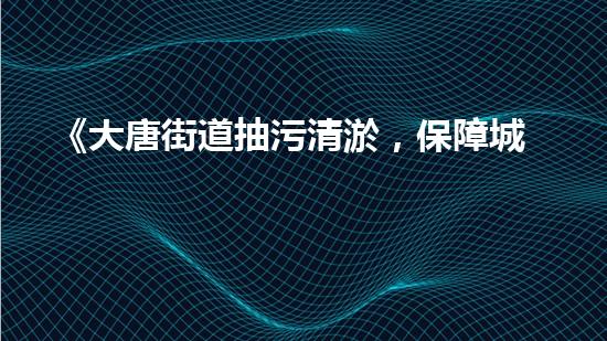 摘要:《大唐街道抽污清淤,保障城市环境卫生》是一篇关于城市环境卫生的报道,介绍了大唐街道的环境卫生保障工作。本文将从多个方面对这篇报道进行深入解读,分析其意义和价值。正文:1. 水体污染治理大唐街道在...