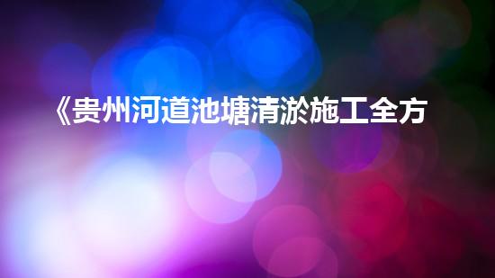 《贵州河道池塘清淤施工全方位解析》