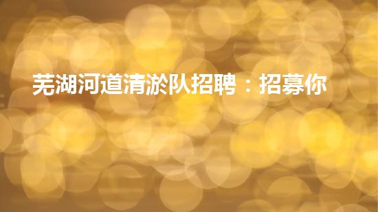 芜湖河道清淤队招聘:招募你加入河道保洁大行动!