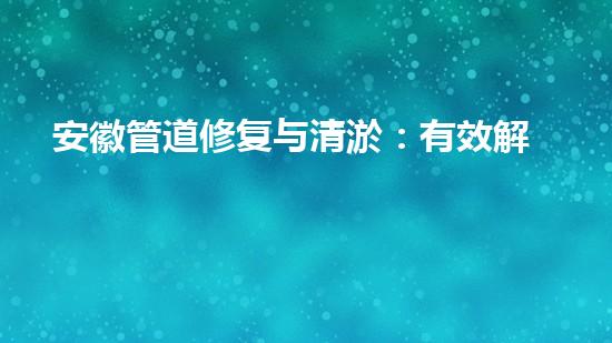 安徽管道修复与清淤:有效解决管道堵塞问题是目前面临的一个重要课题。本文将介绍安徽管道修复与清淤的一些技术和方法,探讨如何有效地解决管道堵塞问题。同时,本文还将向读者介绍一些相关背景信息,引起读者的兴趣。