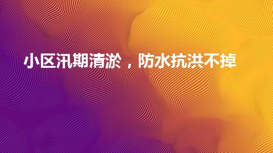 在小区汛期,清淤和防水抗洪是一项十分重要的任务,这不仅关乎到小区居民的生命财产安全,也关系到社会的稳定。本文将从四个方面介绍小区汛期清淤和防水抗洪的知识,希望能够引发读者的兴趣,并提供一些实用的背景信息。