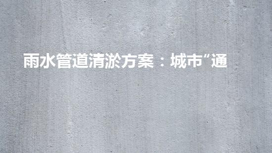 随着城市化的发展,城市暴雨成为一个越来越普遍的现象,雨水管道清淤变得愈加重要。本文将介绍一种雨水管道清淤方案:城市“通衢”暴雨时刻的时刻清道夫。通过这种方案,城市可以更好地管理雨水管道,提高城市的防汛能力。本文介绍了该方案的背景、原理以及实施技术,旨在为城市管理者和清淤行业专业人士提供参考。