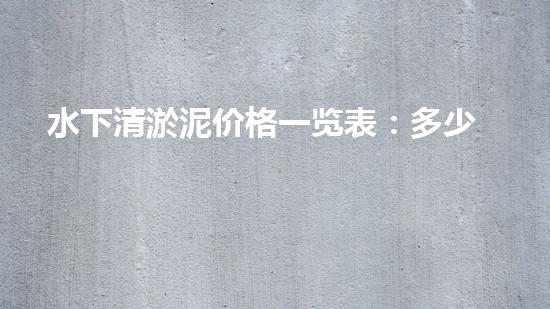 随着环境污染越来越严重,水下清淤泥已经成为了一项重要的行业,它能够有效地净化水体,并保护水生态环境。那么,水下清淤泥价格一览表:多少钱一桶呢?通过本文的介绍,相信读者能够更好地了解水下清淤泥的价格体系,并对清淤行业有更加深入的了解。
