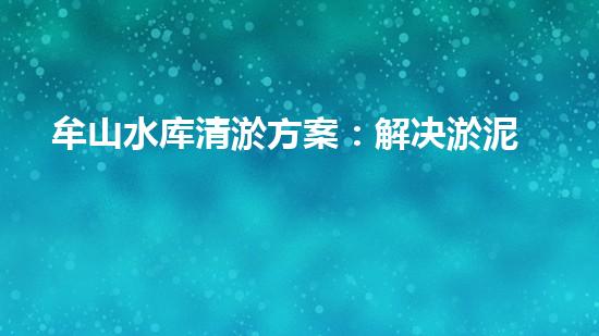 牟山水库是一个固定的水源地,在其周围的城市和乡村都需要水库的水来进行生产和生活。但由于牟山水库长期存在淤泥难题,影响了水库的存水容量和水质,使得水库不能够发挥其最大的作用。本文将从技术方案角度介绍解决牟山水库淤泥难题的技术方案,为水库提供更好的保障。