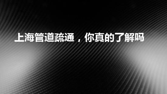 上海管道疏通,你真的了解吗?