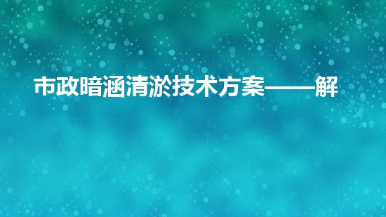 市政暗涵清淤技术方案——解决城市暗涵淤积的高效方法