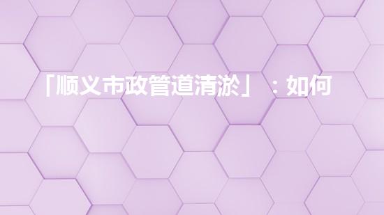 「顺义市政管道清淤」:如何保障城市排水安全?