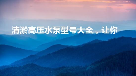 清淤高压水泵型号大全,让你轻松选择适合的产品!