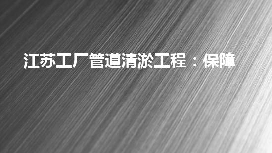 江苏工厂管道清淤工程:保障生产命脉的资深化解策划