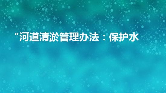 “河道清淤管理办法:保护水系,维护河流健康”