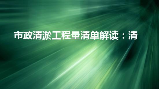 市政清淤工程量清单解读:清单内容、施工要点、成本控制