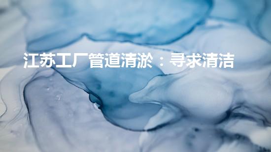 江苏工厂管道清淤:寻求清洁解方
