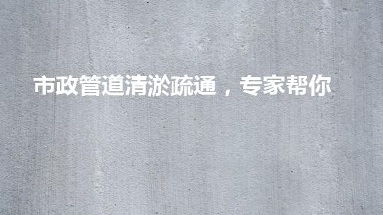 市政管道清淤疏通,专家帮你解决管道问题