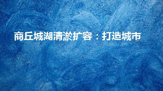 商丘城湖清淤扩容:打造城市绿心,提升水环境质量