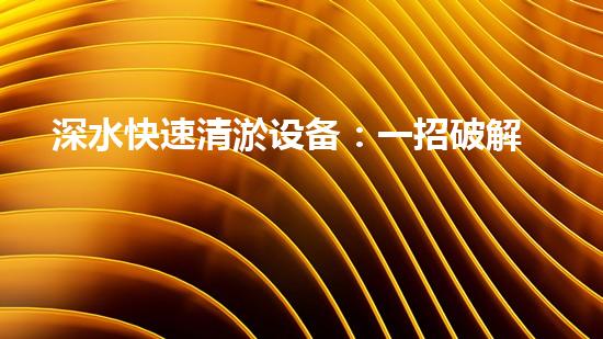 深水快速清淤设备:一招破解深水难题