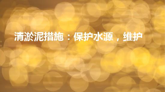 清淤泥措施:保护水源,维护生态,促进水生态经济发展