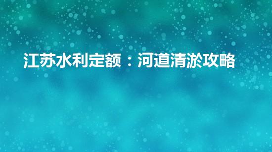 江苏水利定额:河道清淤攻略