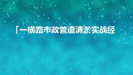 「一横路市政管道清淤实战经验分享」