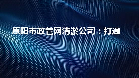 原阳市政管网清淤公司:打通城市“喉咙”,畅通无阻