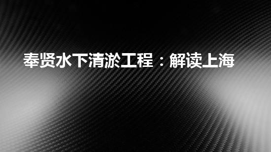 奉贤水下清淤工程:解读上海生态保护和海洋经济发展的新篇章