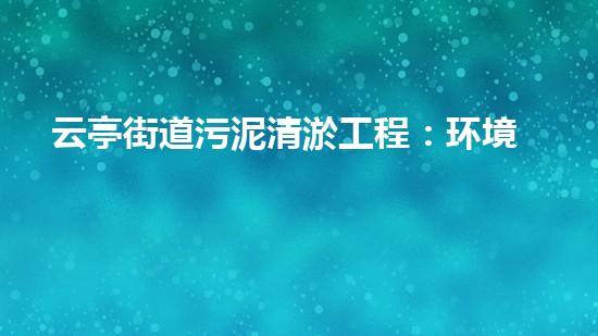云亭街道污泥清淤工程:环境治理成效分析及未来发展思路